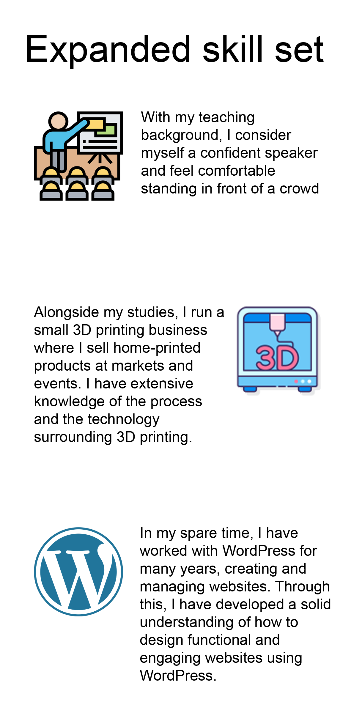 Alongside my studies, I run a small 3D printing business where I sell custom printed products at markets and on a made to order basis. At the moment, it is a one man operation that I have been running for around two years.